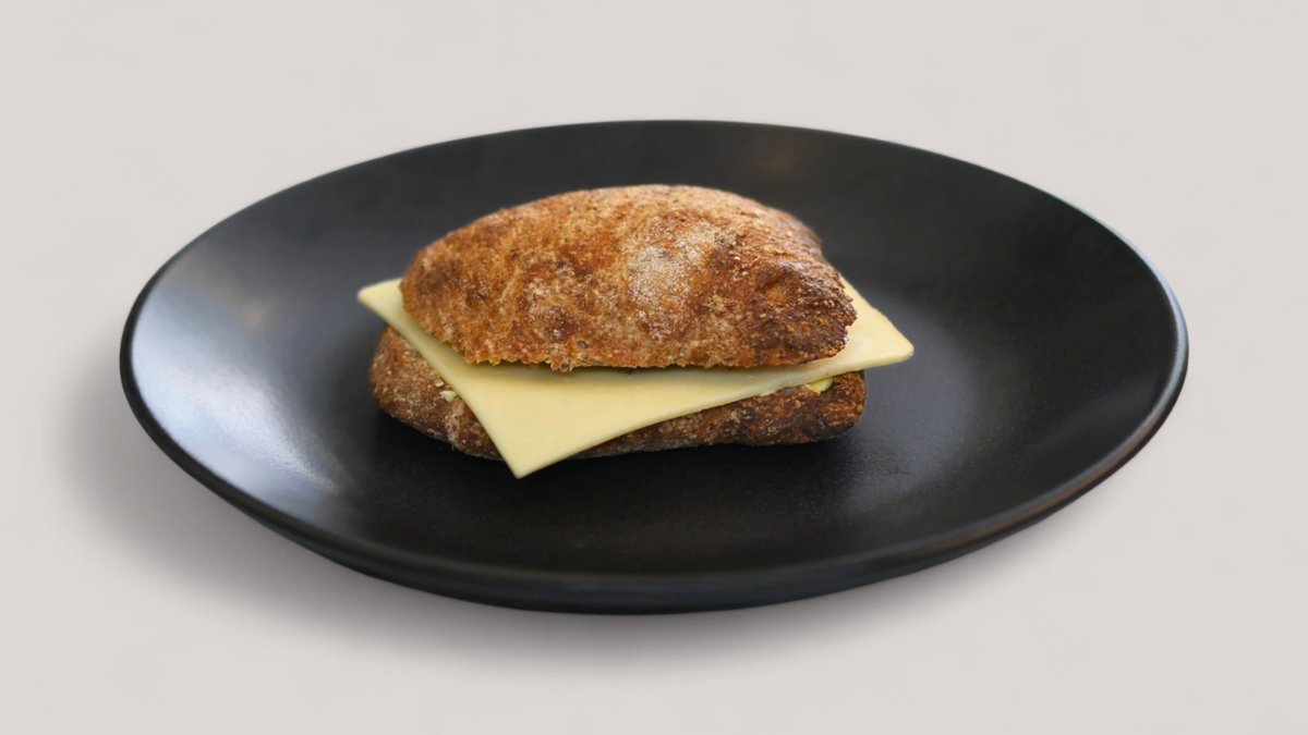 Økologisk artisunbolle med økologisk smør og økologisk lagret ost.