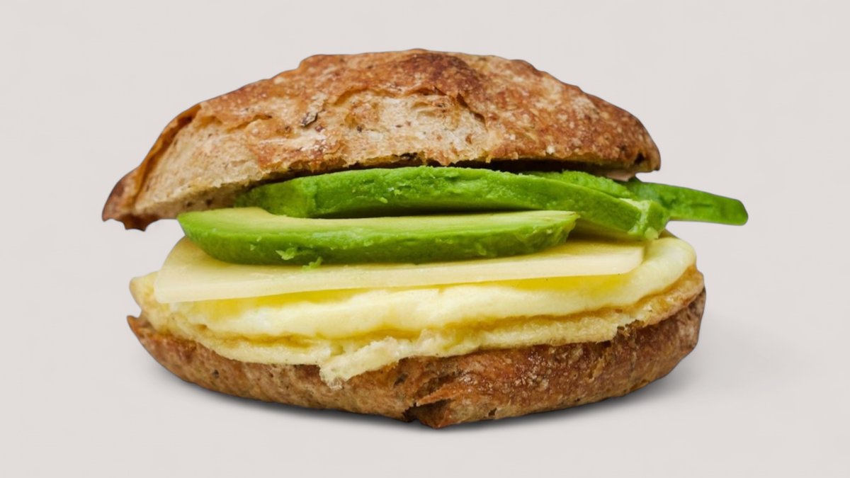 Økologisk artisun surdej-bolle med smør,økologisk omelette, lagret ost og økologisk avocado