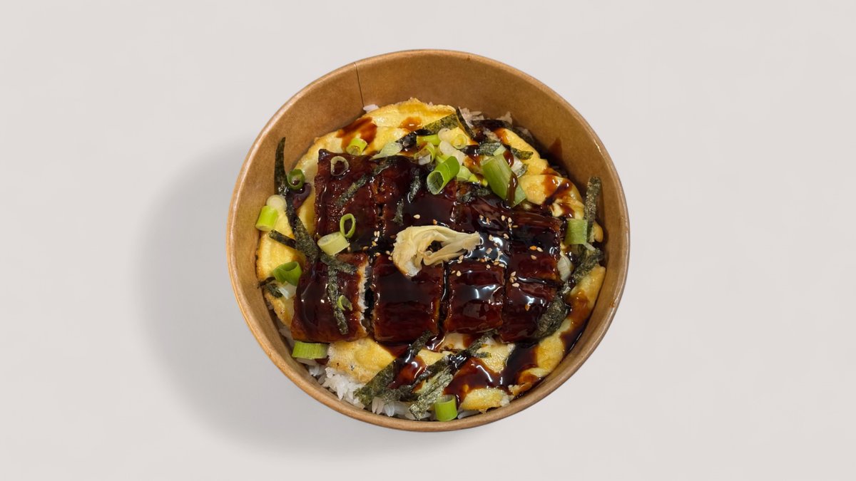 Valgfri protein, sushi ris med avocado, agurk, salat og chilimayo, teriyaki, sesam.