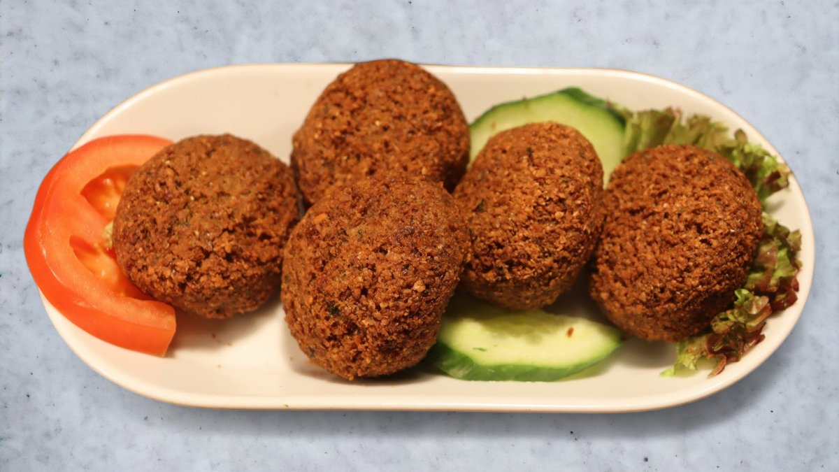 Fyldt aubergine. Serveres med valgfri sodavand, sarma, falafel, ris og salat.