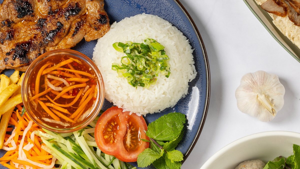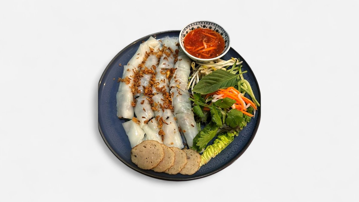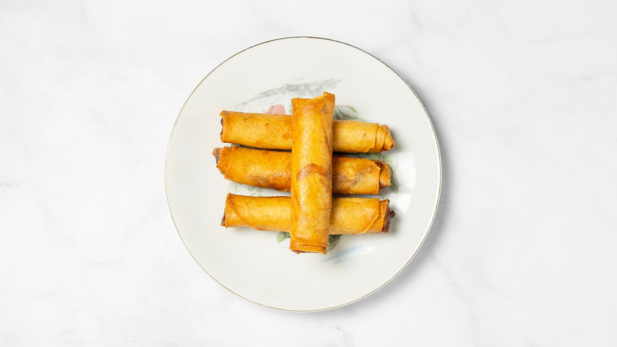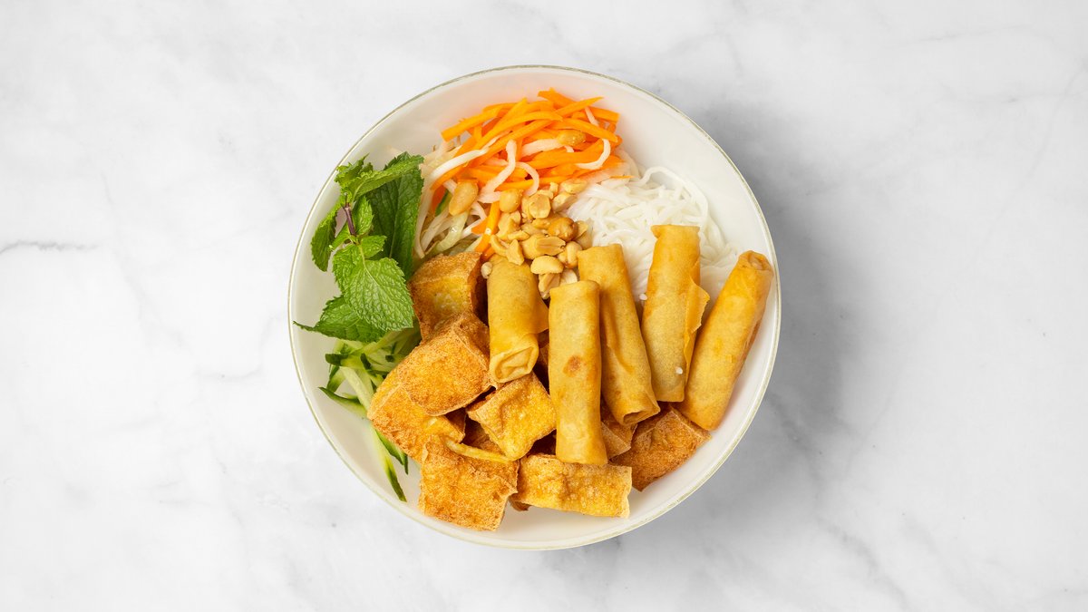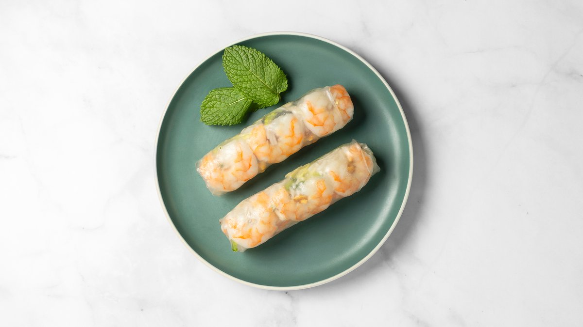 Vietnamesiske forårsruller med mynte, sursødsovs og valgfri protein.