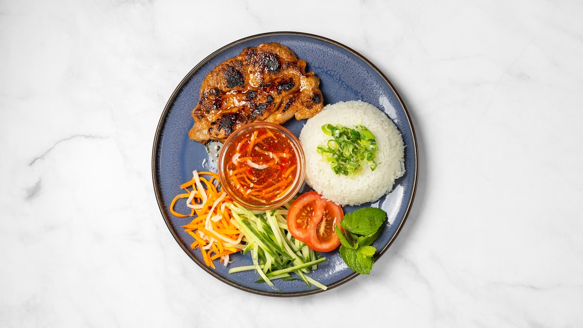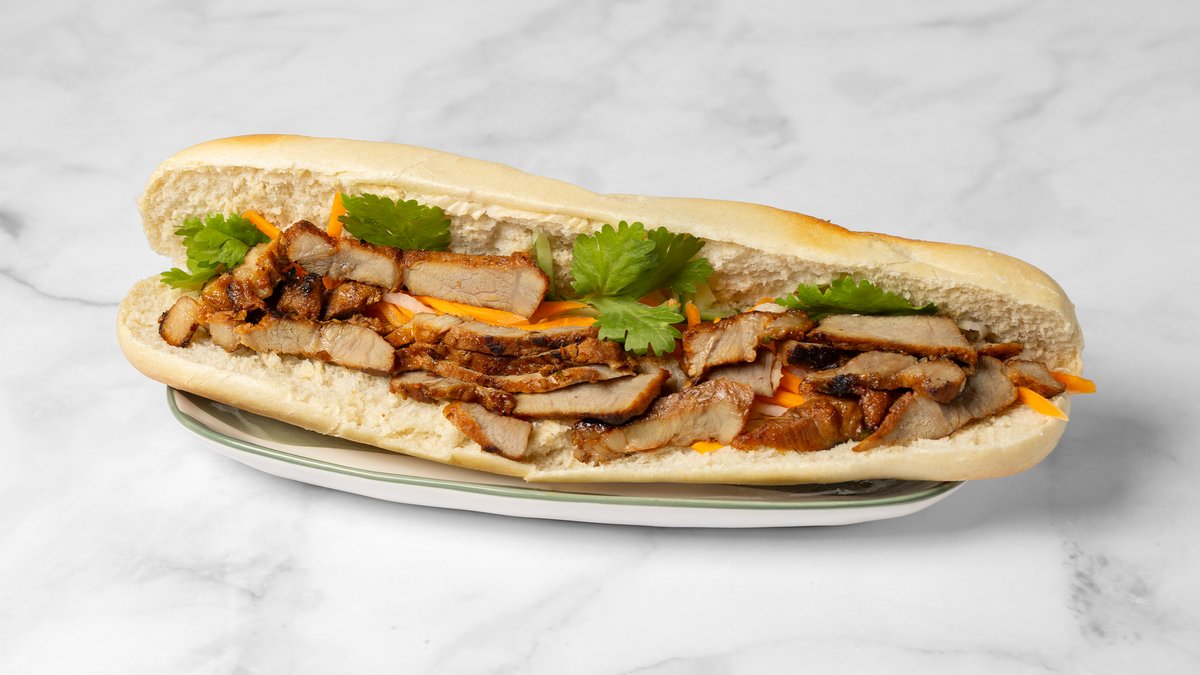 Vietnamesisk baguette med nakkekotelet, syrlige grøntsager og koriander.