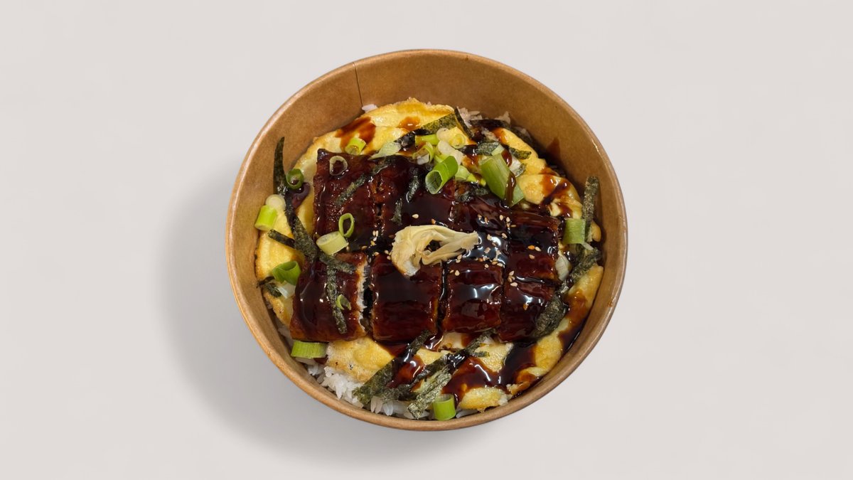 Valgfri protein, sushi ris med avocado, agurk, salat og chilimayo, teriyaki, sesam.