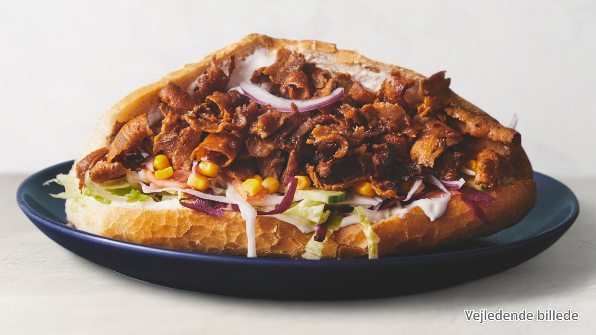 Lun flute med fyld af kebab, ost, salat og creme fraiche dressing.