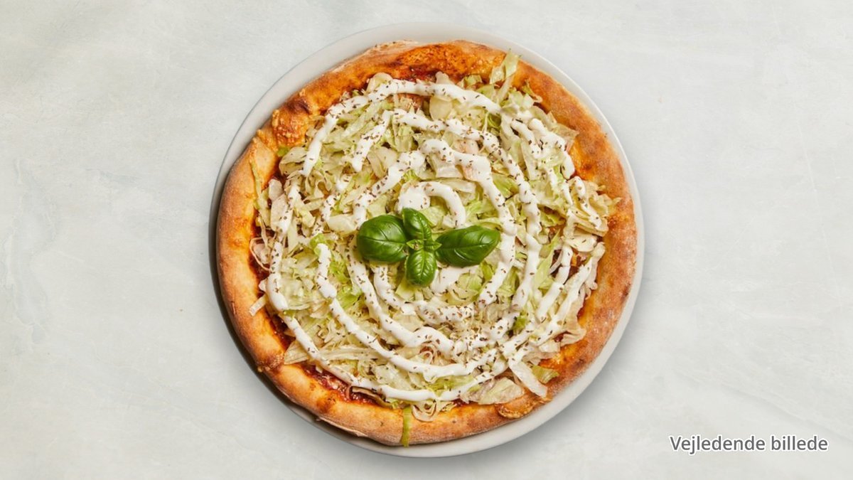 Tomat, ost, kebab, løg, champignon, jalapeños, hvidløg og oregano.