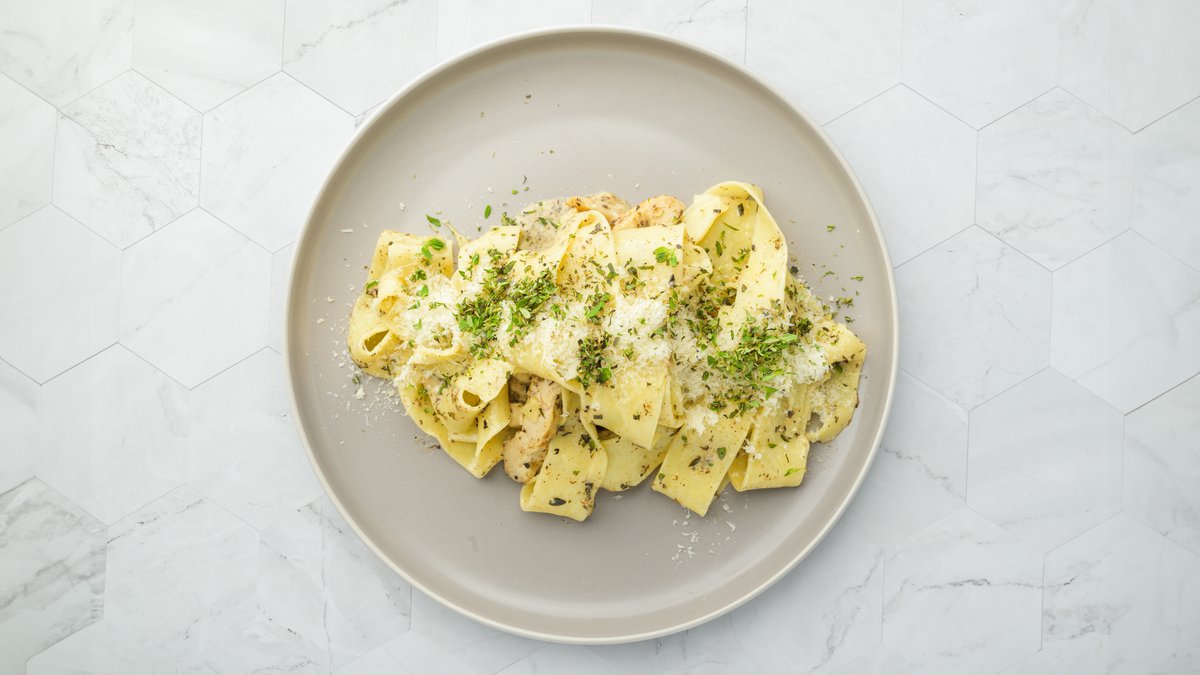 Trøffelcreme, ost, løgringe og rucola. Serveres med pommes frites og valgfri sodavand.