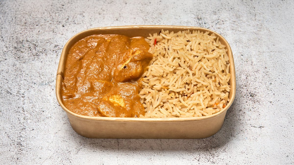 En krydret fusion mellem nord- og sydindisk curry med valgfrit protein og knust rød chili. Uden tilbehør (ris/brød)