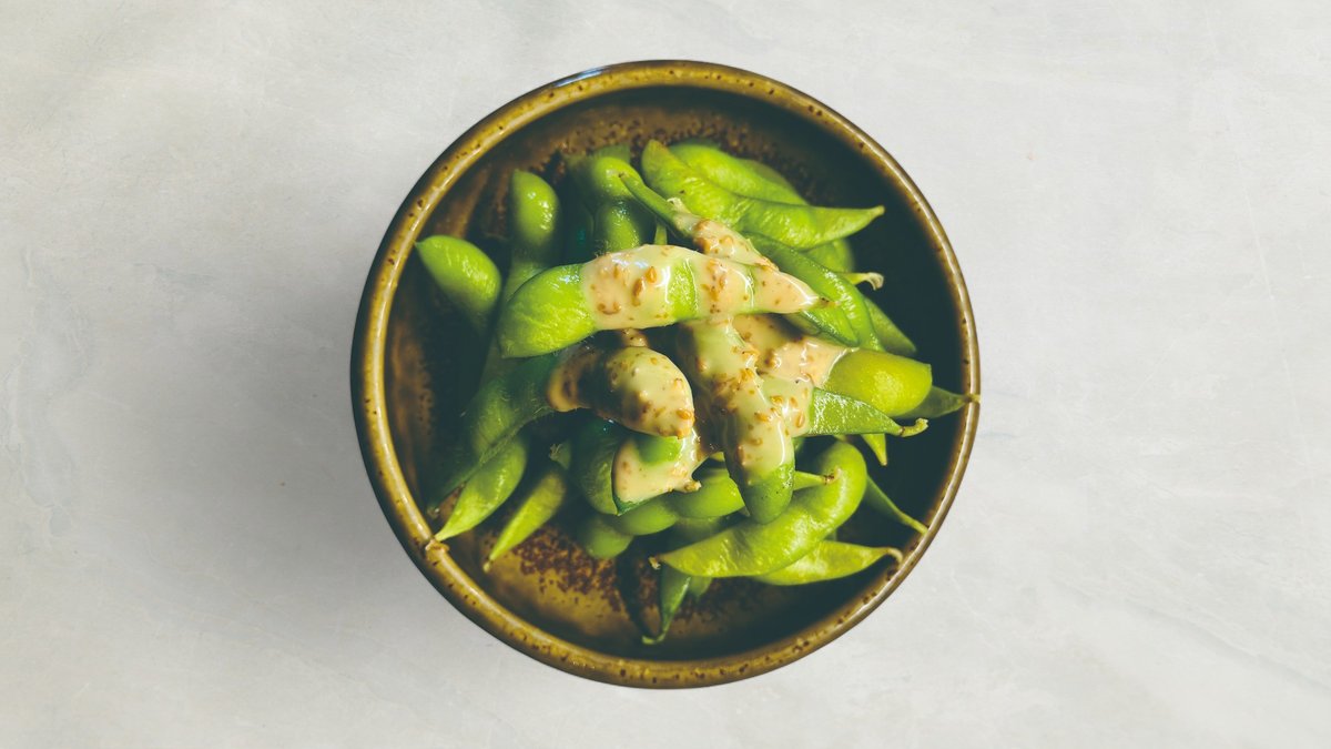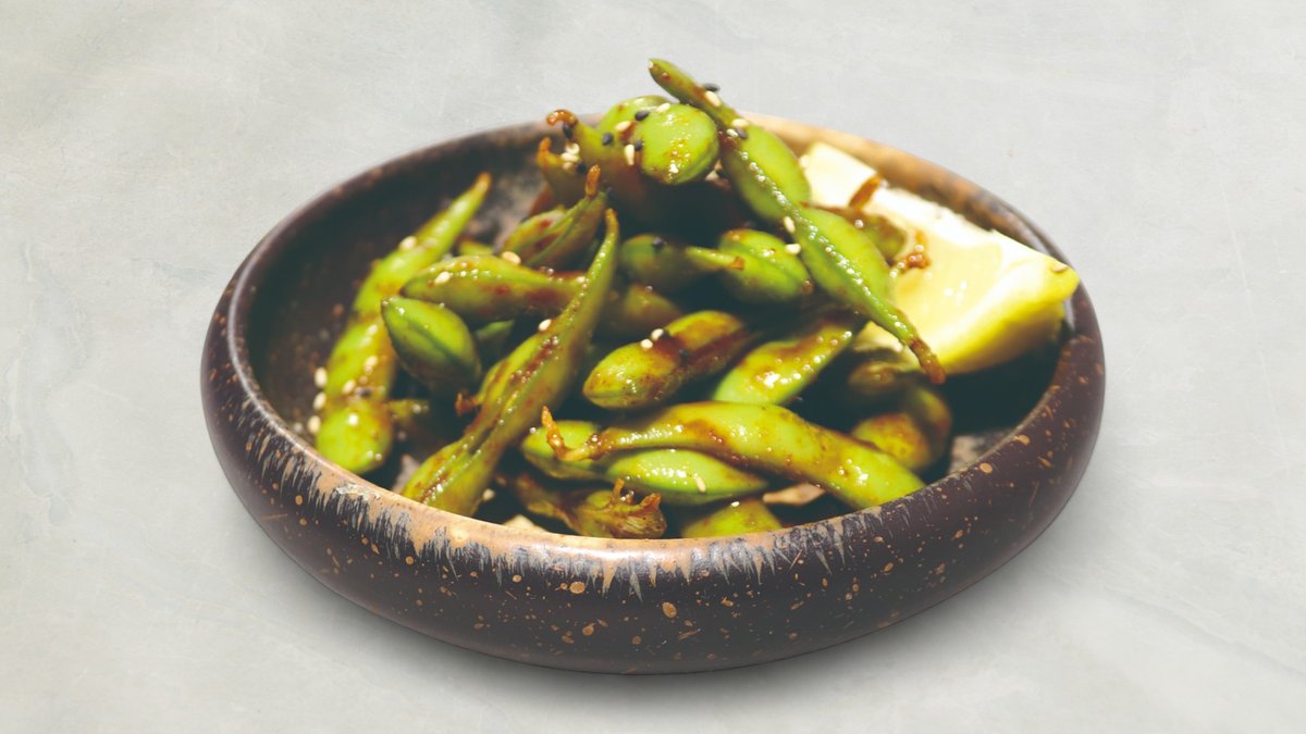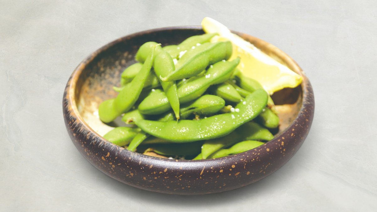 Forret:Edamamebønner 8stk hoso maki laks and 8 stk hosomai agurk