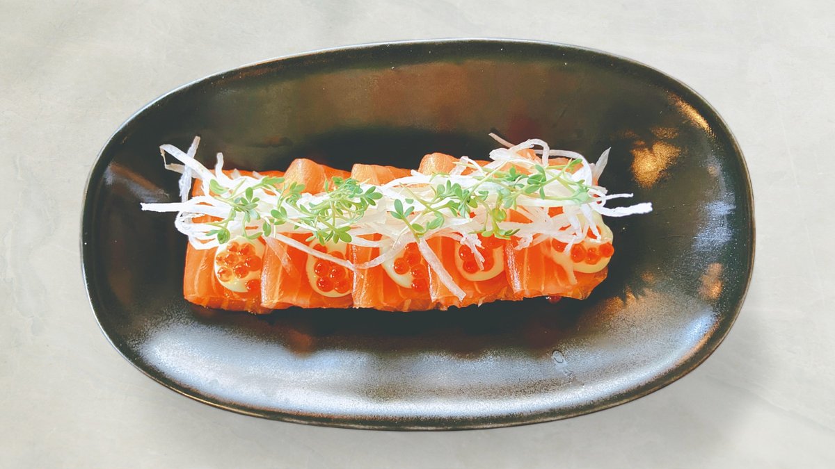 Nigiri: 2 x laks 2 x grillet laks,8 stk Uramaki laks