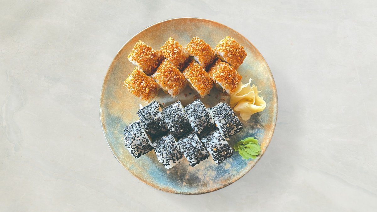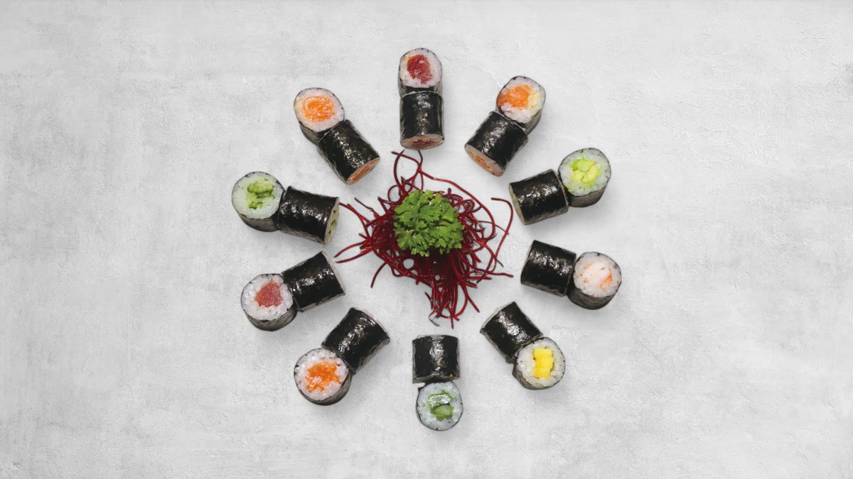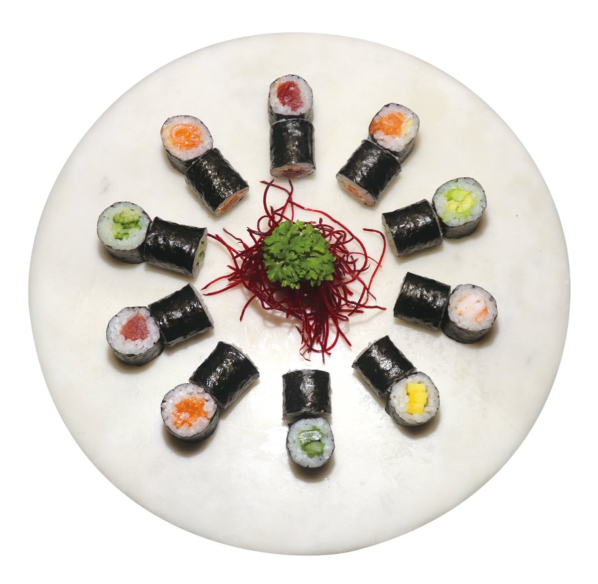 Uramaki: 8 x Alaska 8 x Spicy tun 8 x Crispy reje Futomaki: 6 x Tempura-reje 6 x California.