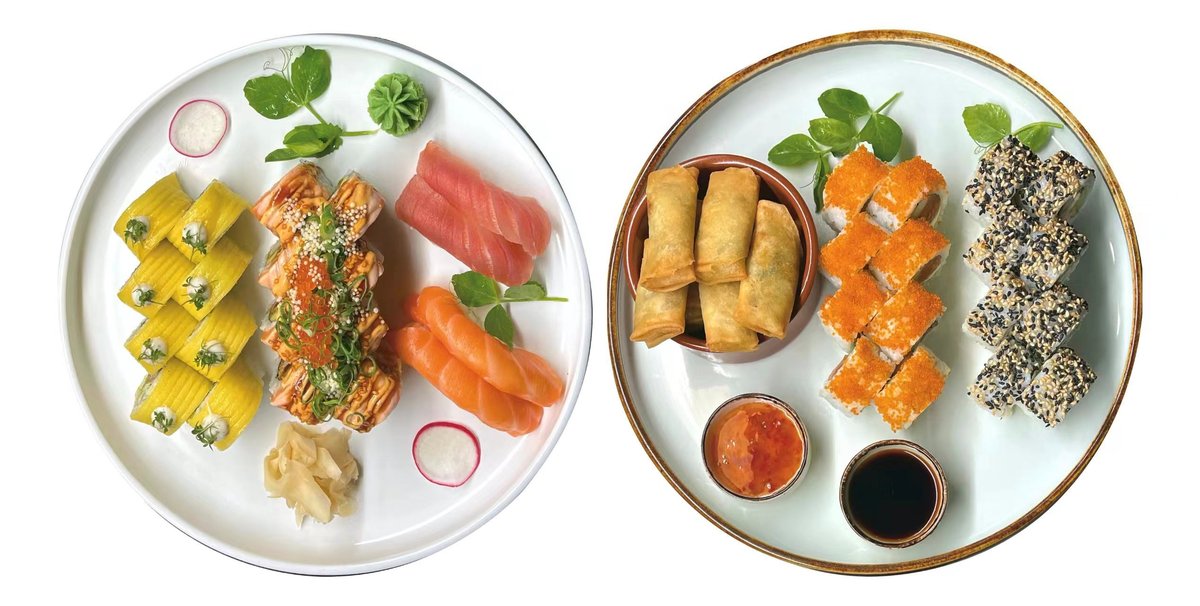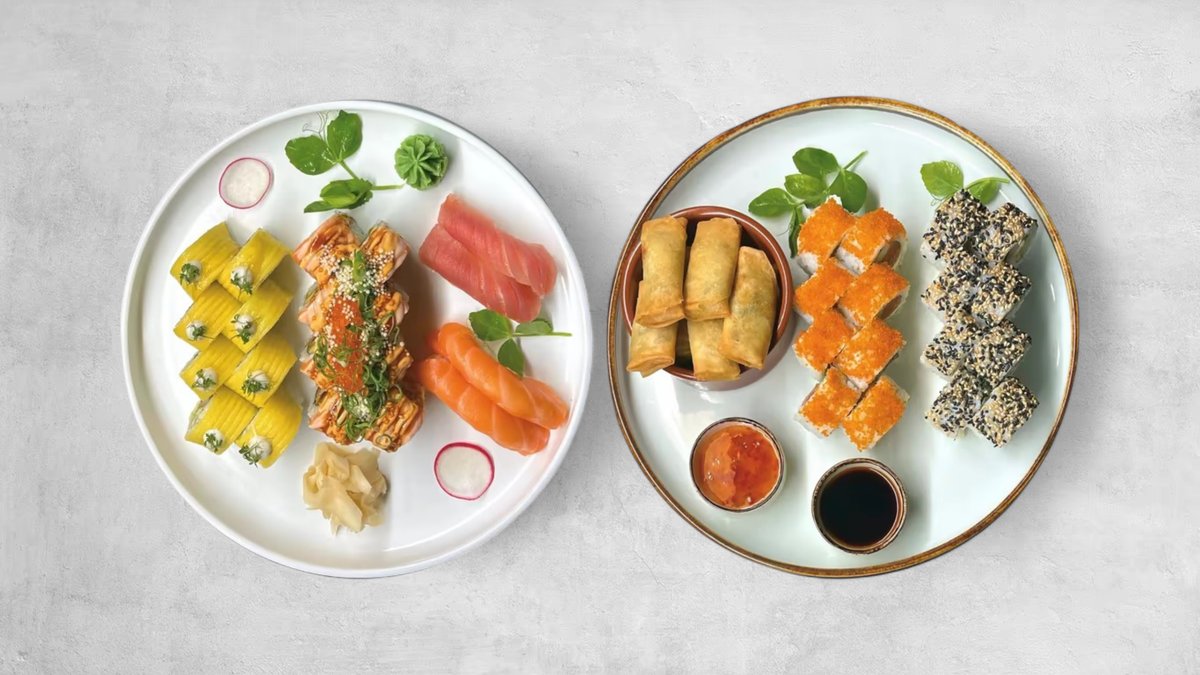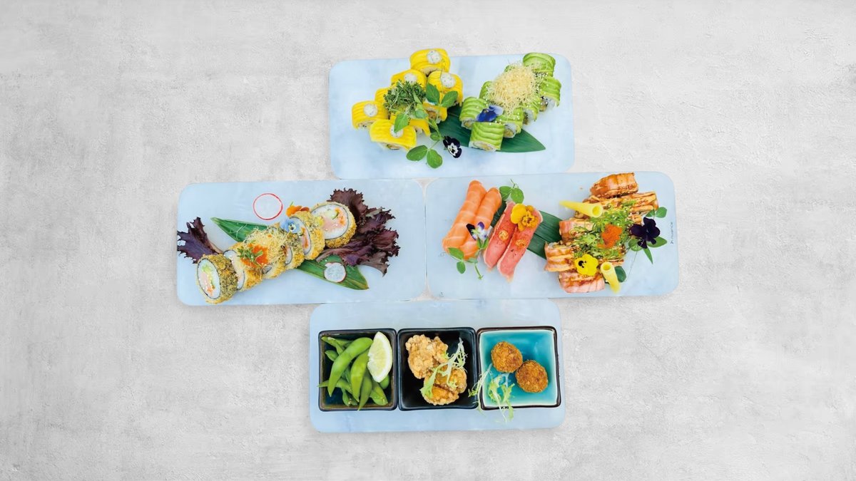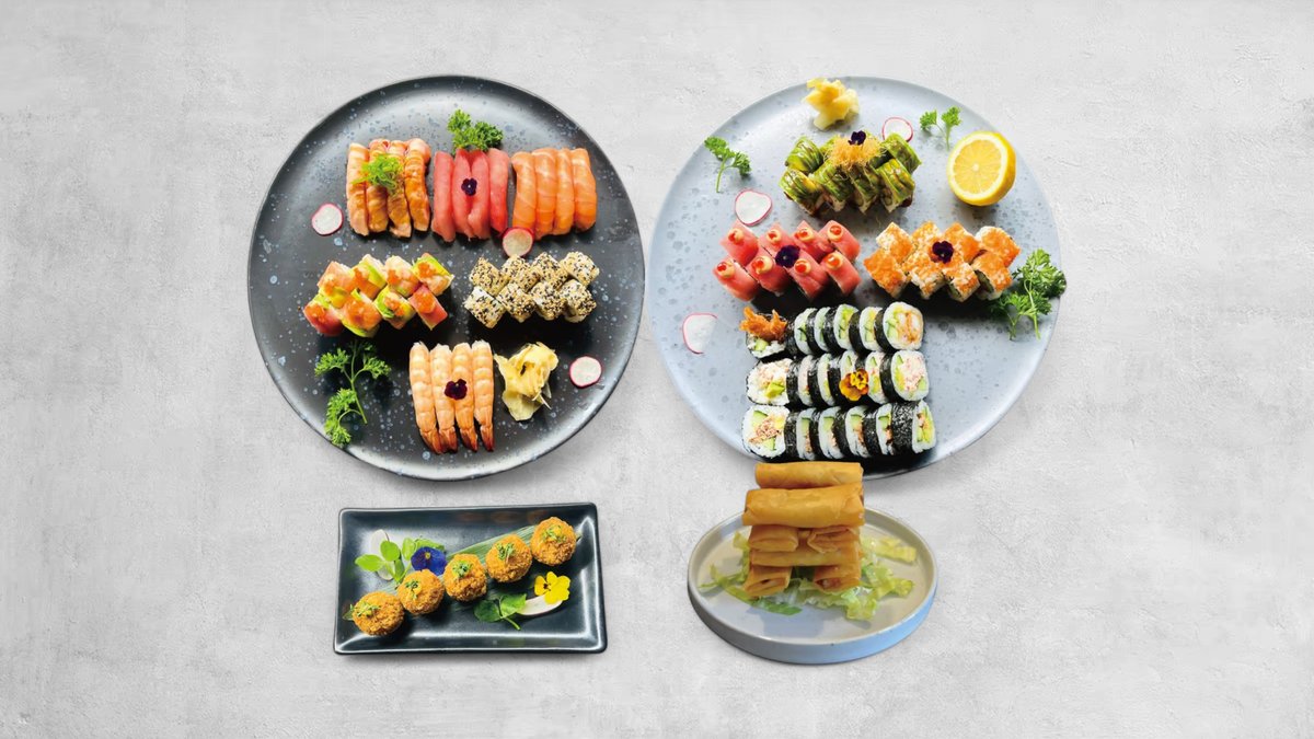 Forretter: Edmame-bønner, croquettes med ris og laks Nigiri: 3 x laks 3 x tun 3 x rejer 3 x grillet laks Hosomaki: 8 x laks Uramaki: 8 x Alaska 8 x Spicy tun Kaburimaki: 8 x Øresund Roll Futomaki: 6 x California 6 x Tempura-reje.