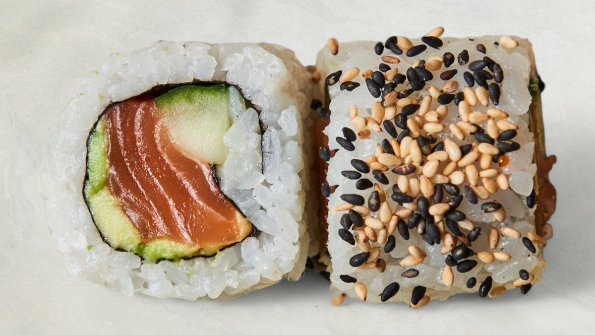 Uramaki: 8 x laks 8 x Spicy rejer.