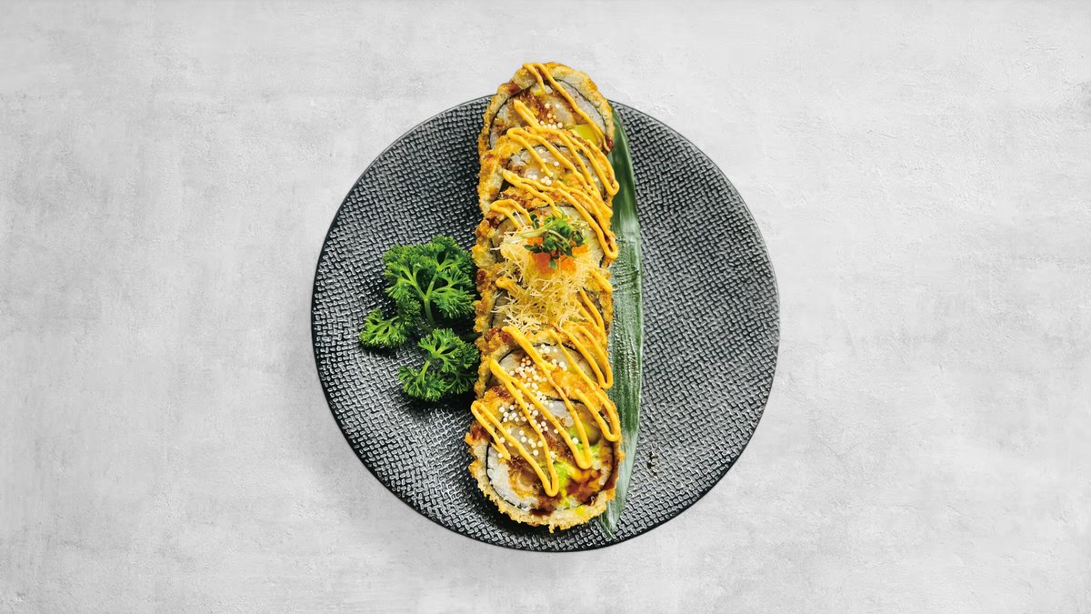 Forretter: 1 x edamame-bønner Nigiri: 1 x mango 1 x avocado 1 x inaria Hosomaki: 8 x avocado Uramaki: 8 x Spicy Kakiyaki.