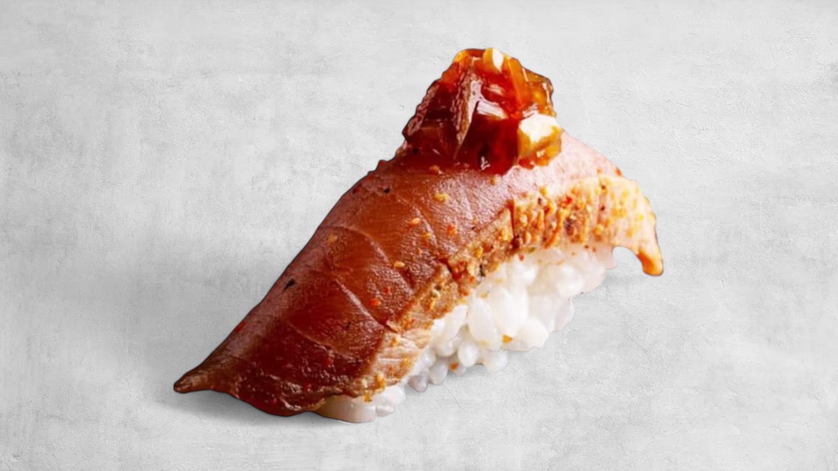 Nigiri: 2 x grillet laks & teriyaki 2 x grillet tun 2 x grillet laks & chilimayo.
