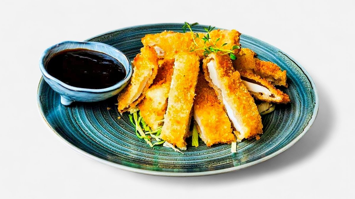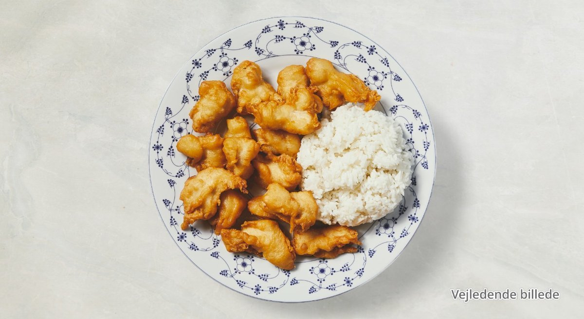 Paneret kyllingespyd i teriyaki sauce eller chilimayo.