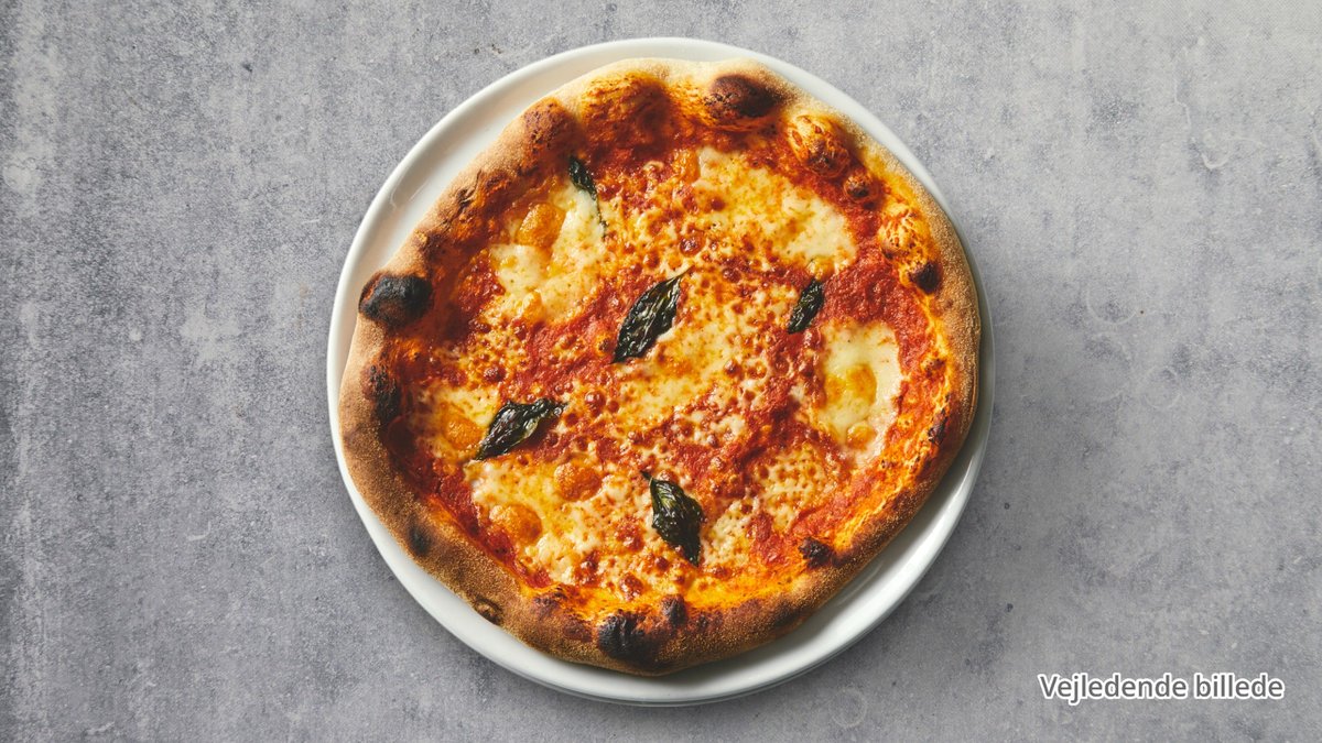 Ost, mozzarella, lufttørret skinke, rucola, cherrytomater, parmesan og basilikumpesto.