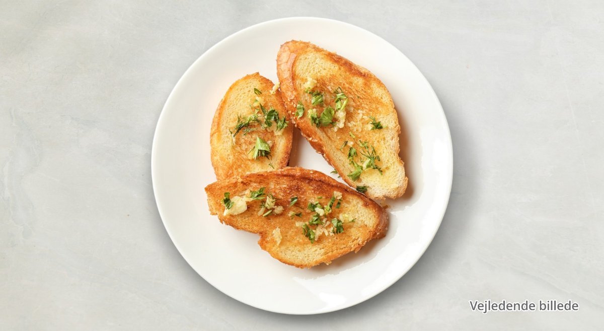 90. Hvidløgsbrød m. revet ost og hvidløg.