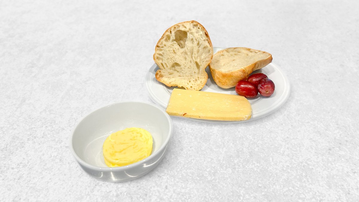 Hjemmebagt surdejsbolle med gammel knas og smør.
