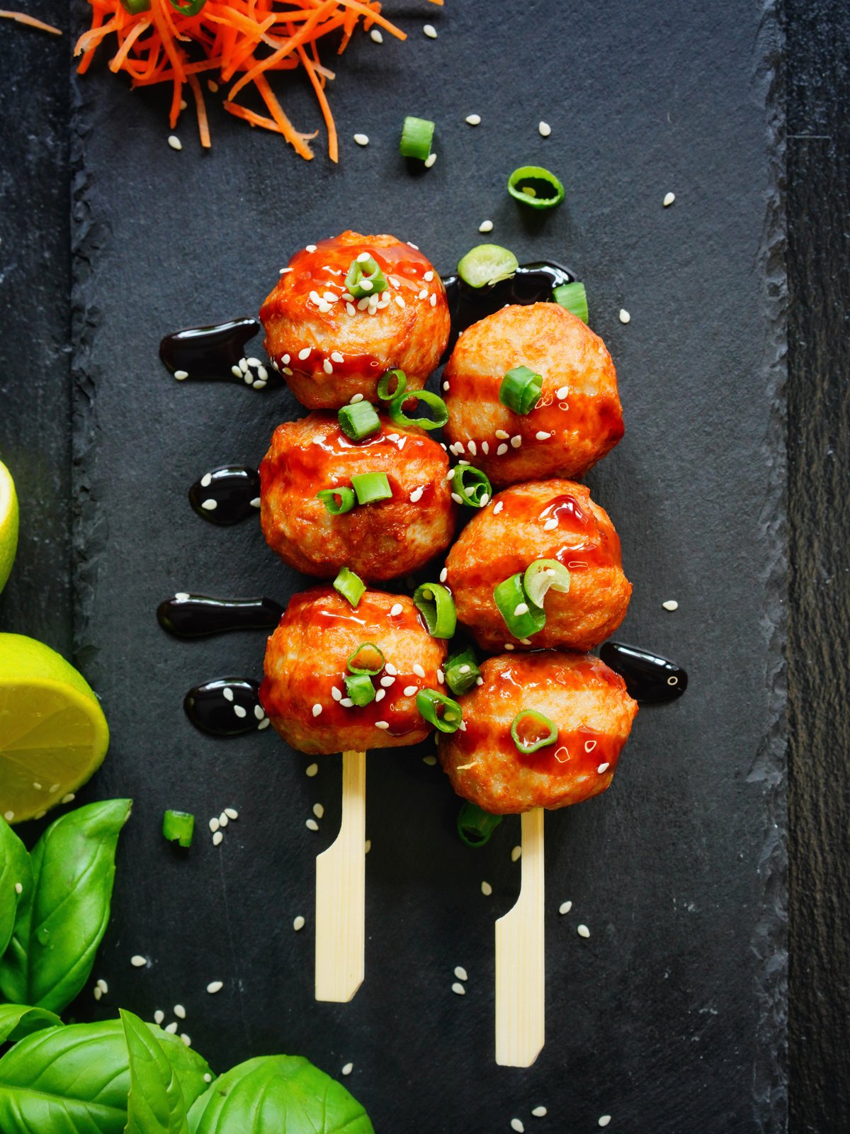 3 stk. Kødboller glaseret med teriyaki sauce.