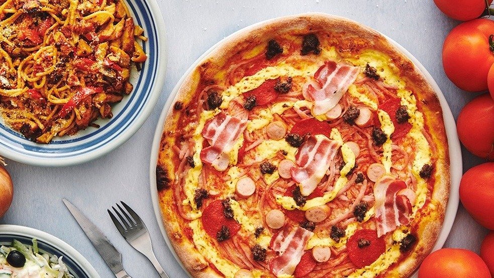Bredt udvalg af pizzaer, pastaretter, burgere og meget mere.