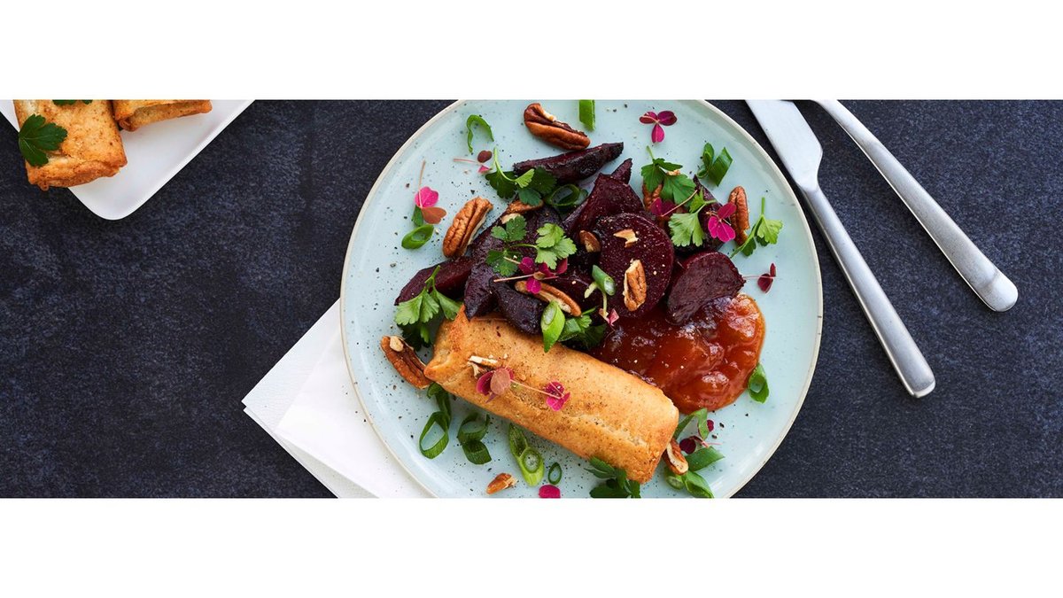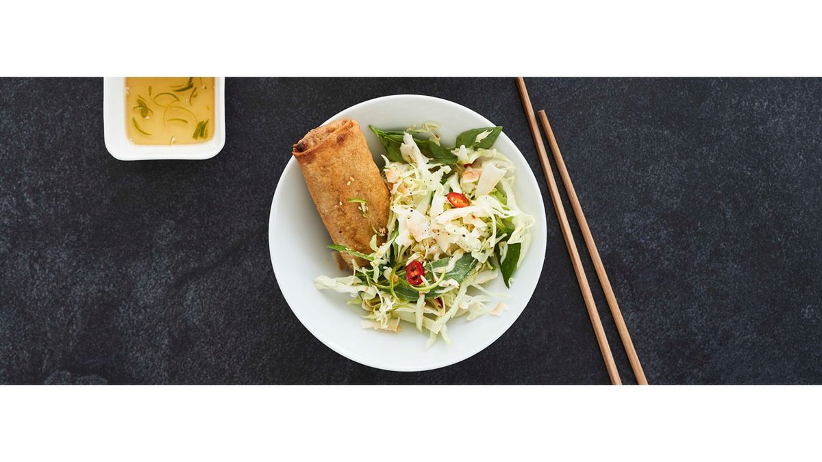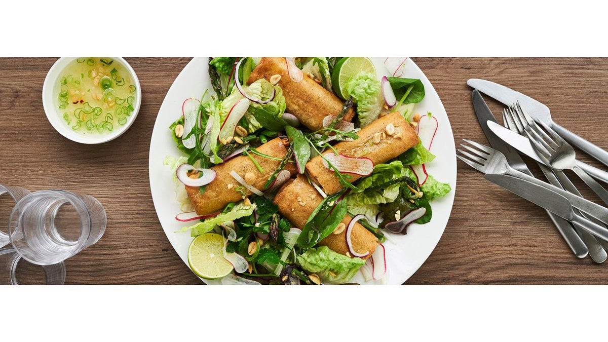 Sprøde ovnruller med oksekød og lynstegte grøntsager