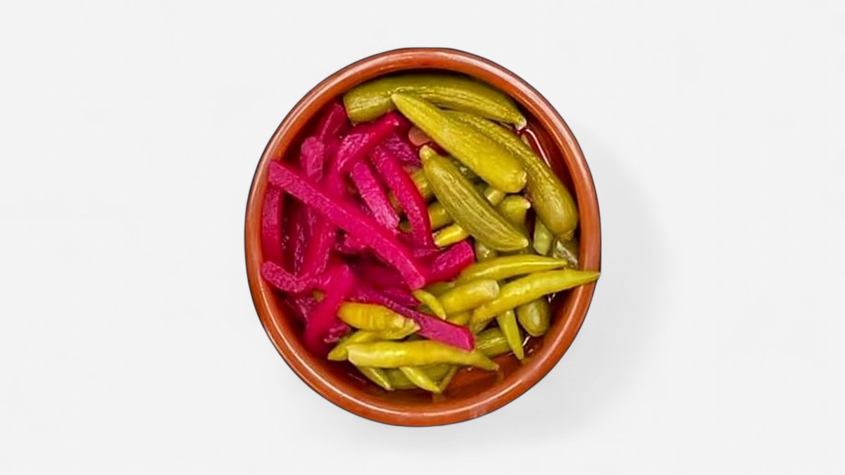 Syltede agurker, pickles og tomater.