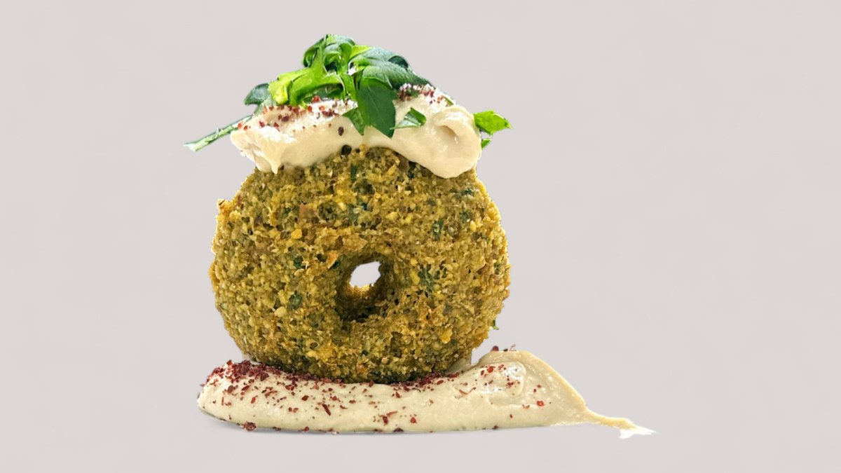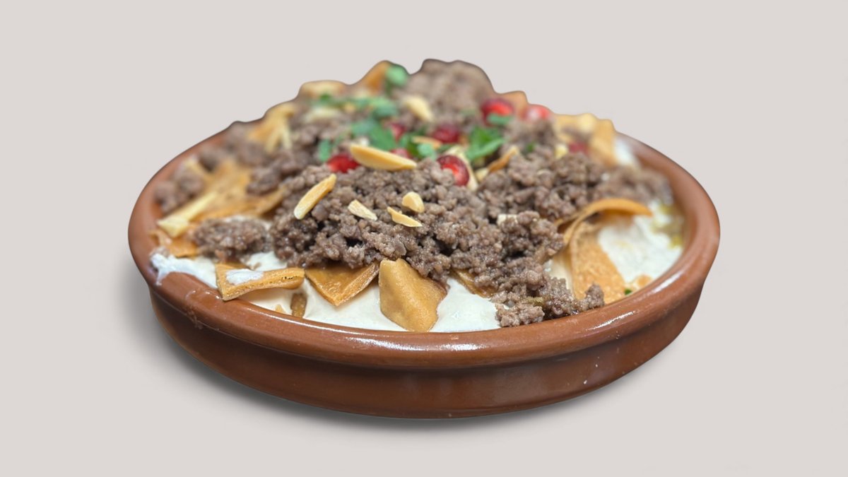 Kikærter, tahin, citron, kød, granatæble og olivenolie.