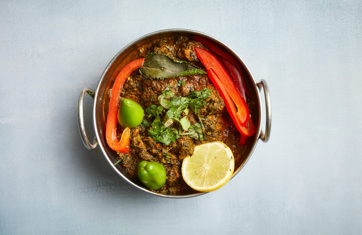 Krydret sauce med spinat og oksekød. Serveres med ris.