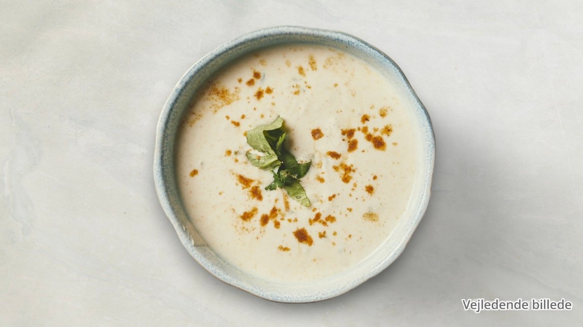 Cremet karry med champignon, løg og masala. Serveres med ris.