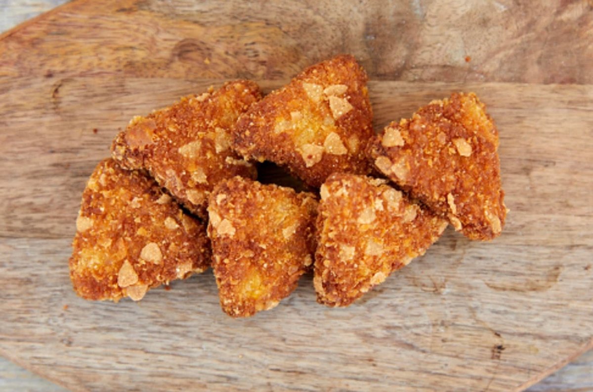 Paneret kyllingebryst i burgerbolle med cheddar, salat, rødlø, pickles og dressing. Combo kan tilvælges, som indebærer pommes frites, sodavand og dyppelse.