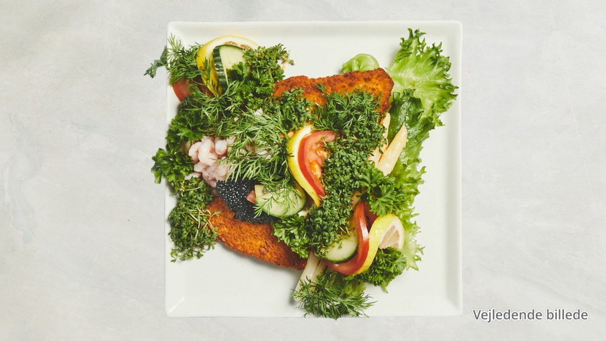 Serveret med tatarsauce, syltede rødløg og frisk citron.