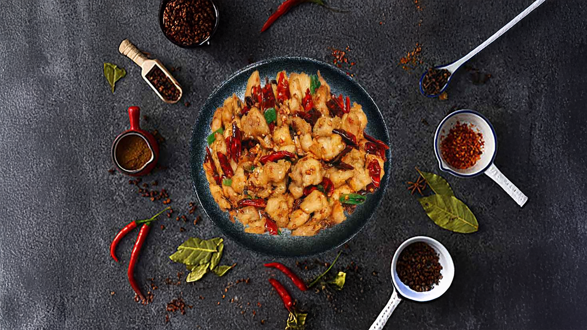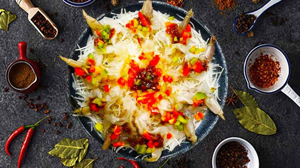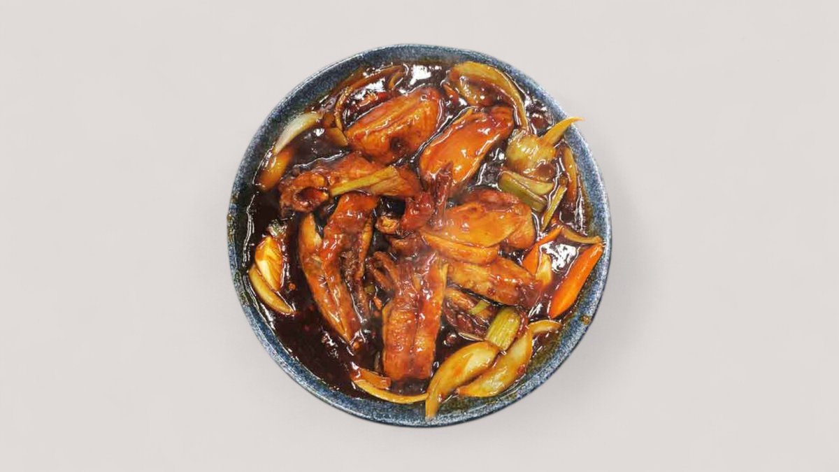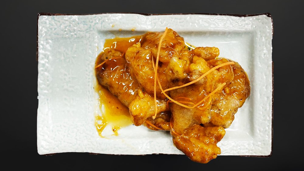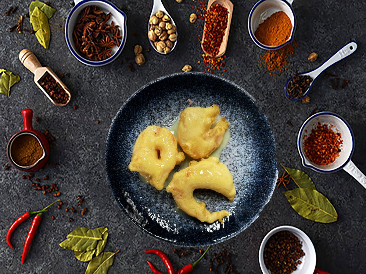 14. Indbagte kinarejer med sursød sauce 3 stk中虾