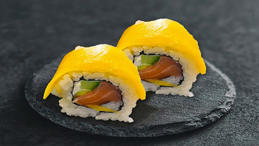 Makirulle omgivet af rispapir, delt i 6 stk.
