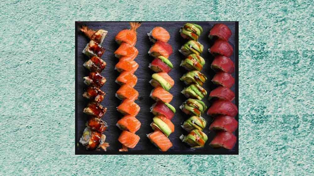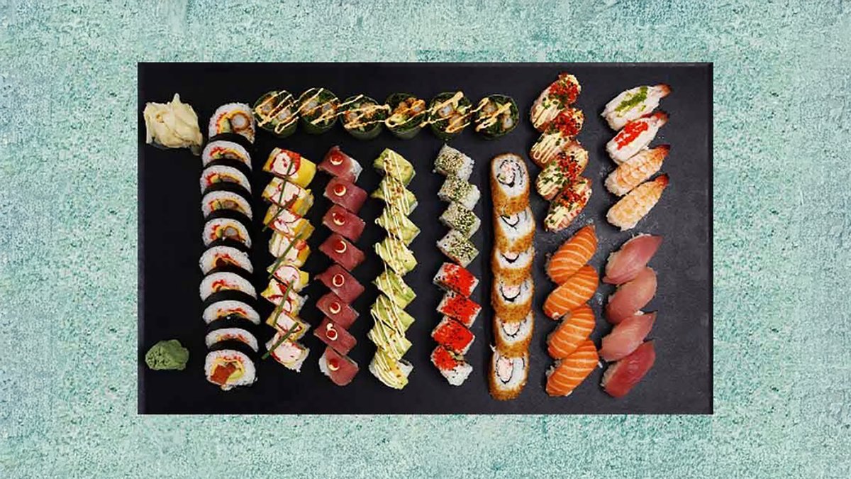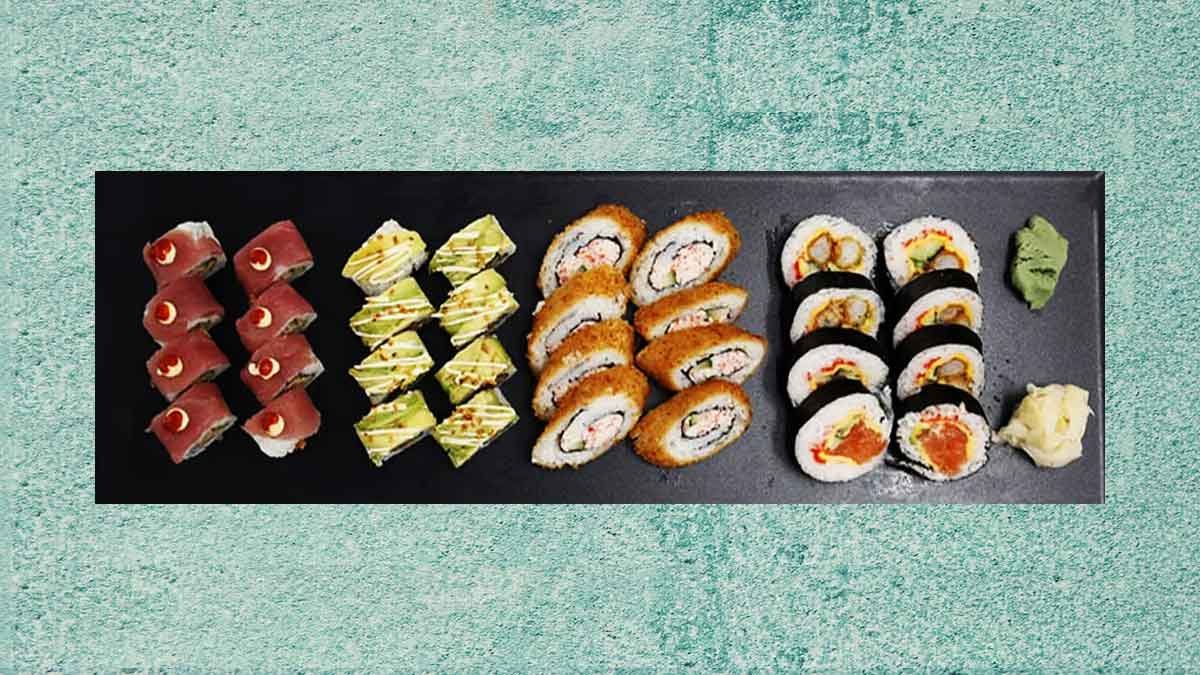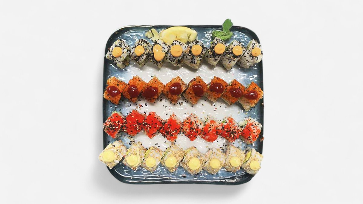Nigiri: 4 x Laks 2 x Tun 2 x Rejer Kaburimaki: 8 x Rainbow Hosomaki: 8 x Laks Futomaki: 5 x Ebi Tempura