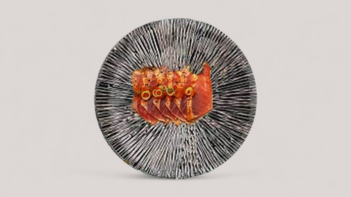 Stor makirulle omgivet af tang, delt i 5 stk.