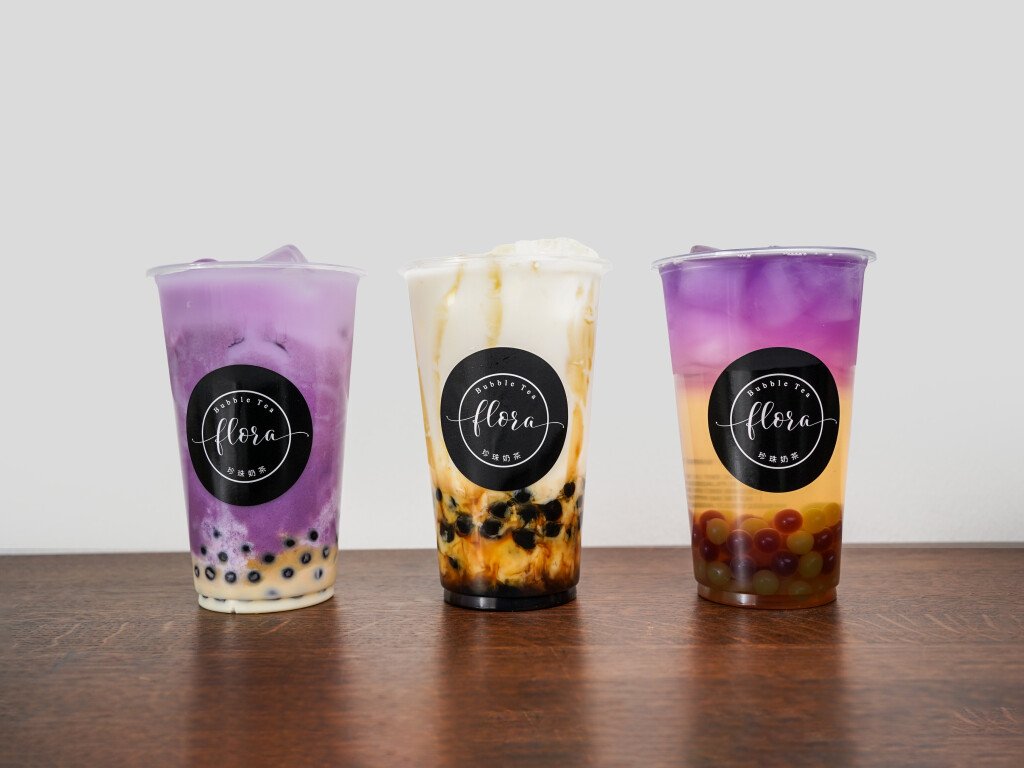 Flora Bubble Tea serverer et stort udvalg af bubble tea med valgfri sirup samt toppings. Lad dig overraske af én af vores mange forskellige smagsvarianter!