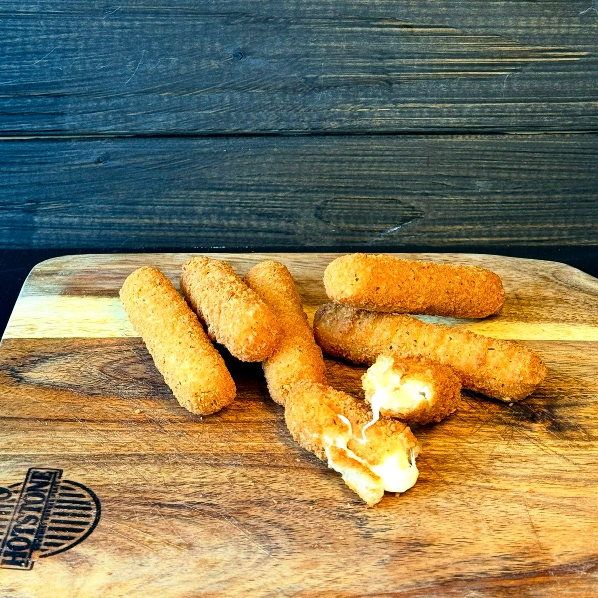 Sprøde pandeklædte stænger med en uimodståelig trækker af smeltet mozzarella.