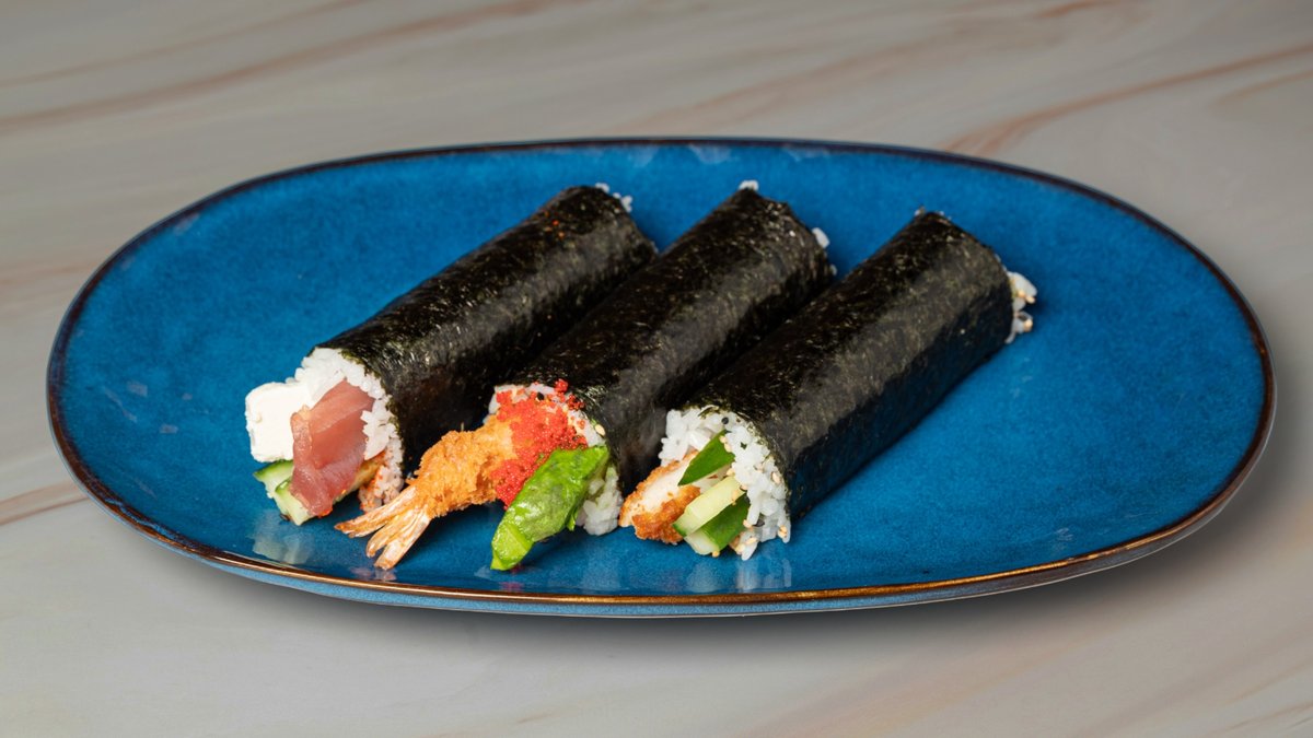 Frokost wrap bundle bestående af 3 valgfrie sushi wraps + en gratis dip.