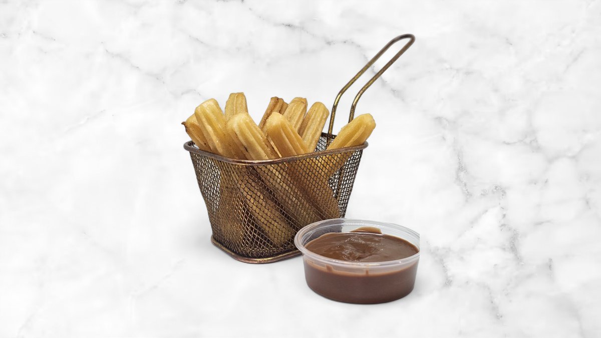 Nyd vores lækre, sprøde churros, drysset med kanel-sukker og serveret med en rig chokoladesauce. Perfekt som dessert!