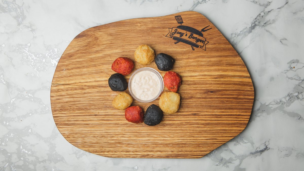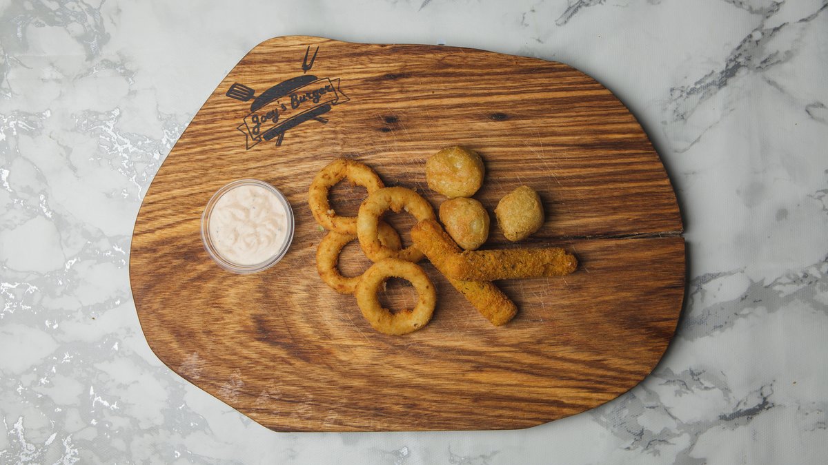 10 stk mix af: Beer Battered Onion Rings, Mozzarella sticks, cheedar cheese og jalapenos