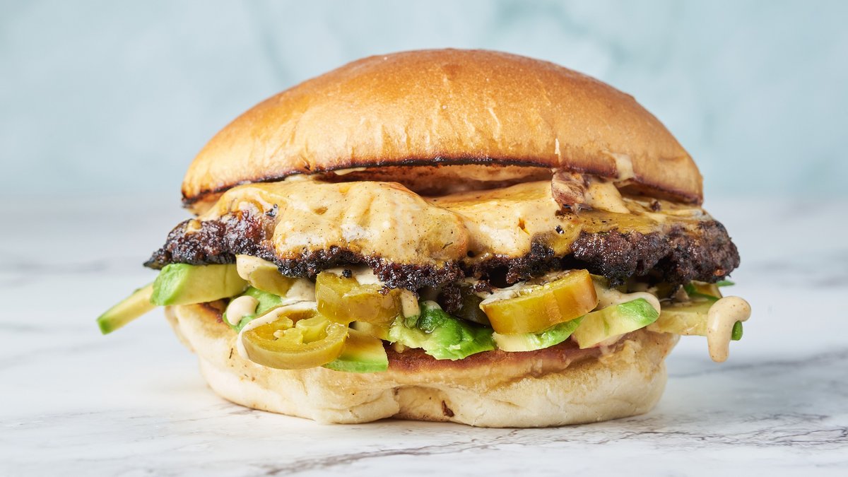Oksekød (120 g), cheddar, jalapeños, chipotle-mayo & avocado.