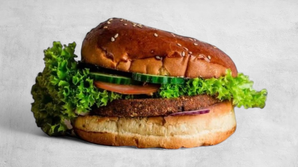 Vegetarbøf med, salat, tomat, rødløg, agurk, mayonnaise og hjemmelavet dressing. Serveres med pommes frites og valgfri sodavand.