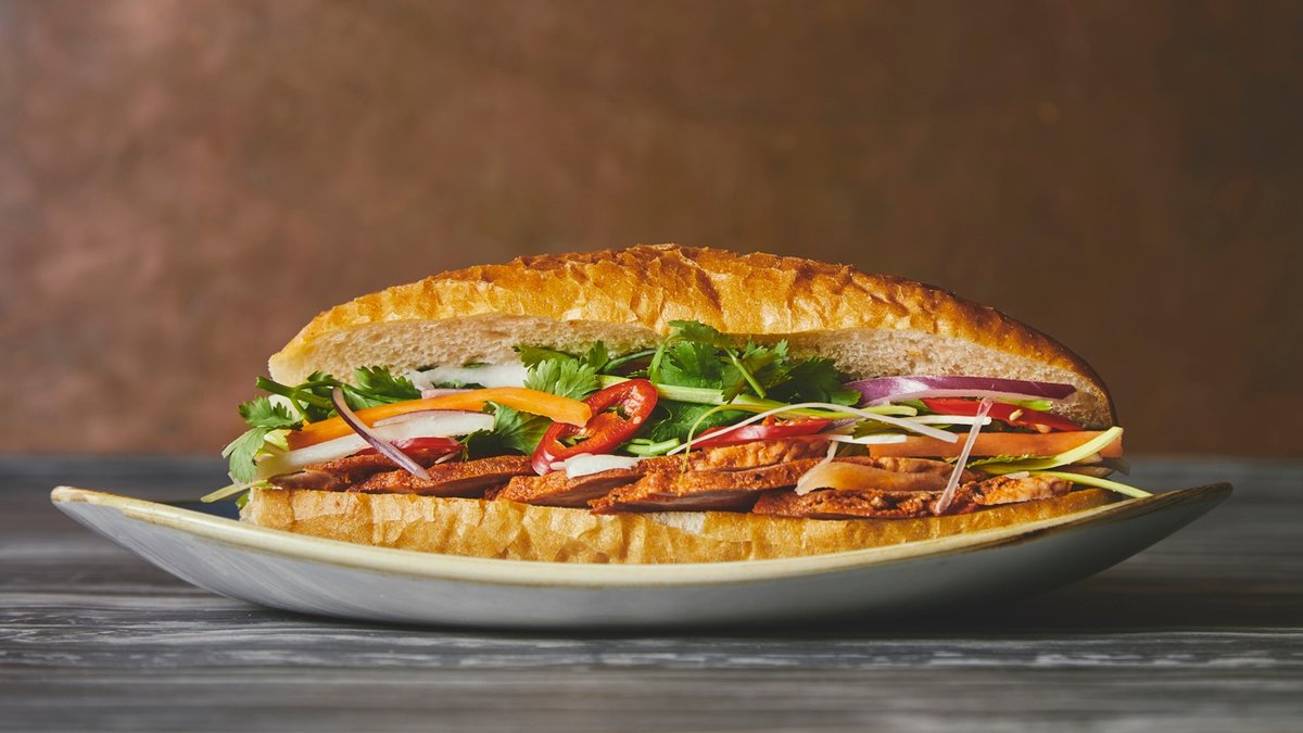 Den vietnamesiske sandwich – bedre kendt under navnet Bánh mì – kombinerer en sprød fransk baguette med specialmarineret kød efter den vietnamesisk opskrift og et hav af friske grøntsager.