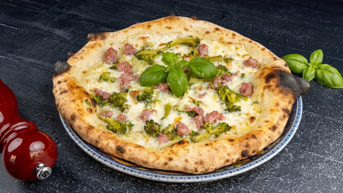 Mozzarella, Pecorino Romano, Italiensk Pølse Broccoli, Frisk Basilikum, Ekstra Jomfru Olivenolie