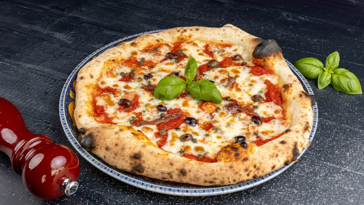 Tomat, Mozzarella, Pecorino Romano, Ansjoser, Kapers, Frisk basilikum, Ekstra Jomfru Olivenolie