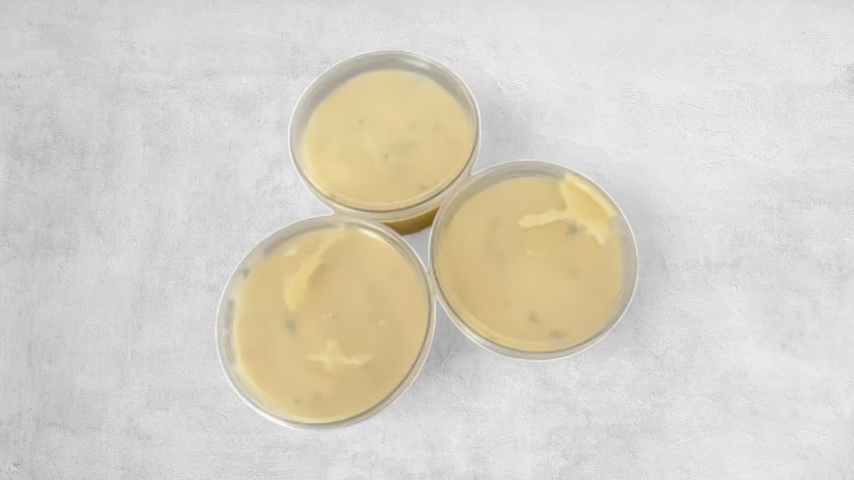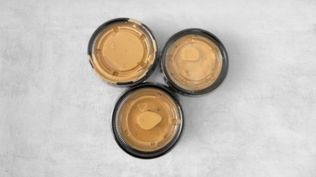 Pommes frites toppet med ost, bacon, stegte løg og rusty sauce.