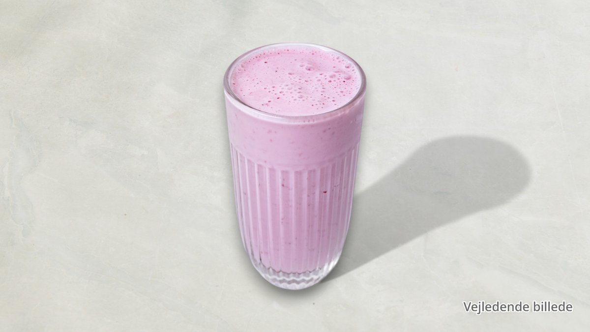 Vaniljeis, jordbær, jordbærsauce, flødskum.