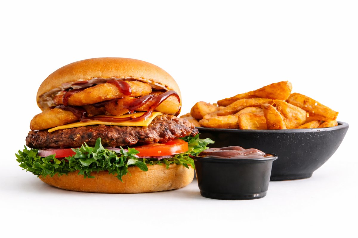 Grillet bøf af 160 gram oksekød, cheddar, salat, tomat, løg, salatmayo, røget barbecuesauce og løgringe. Serveres med kartoffelbåde og barbecue dip.