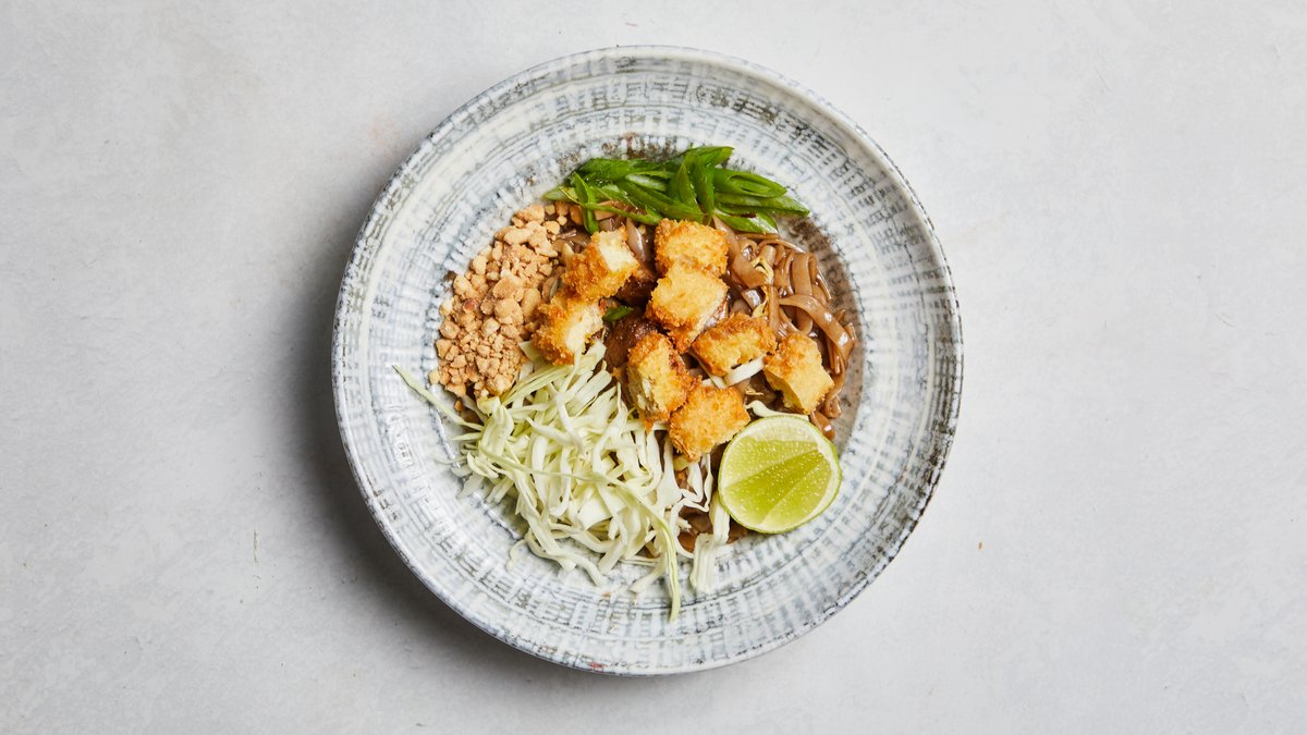 Risnudler, Tofu, Spidskål, Forårsløg, med peanuts & lime