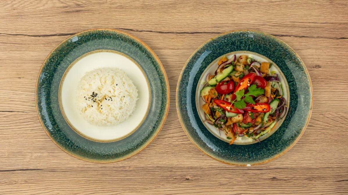 Tofu, Rødløg, Agurk, Mynte, Koriander, Tørret Chili, Cherrytomat